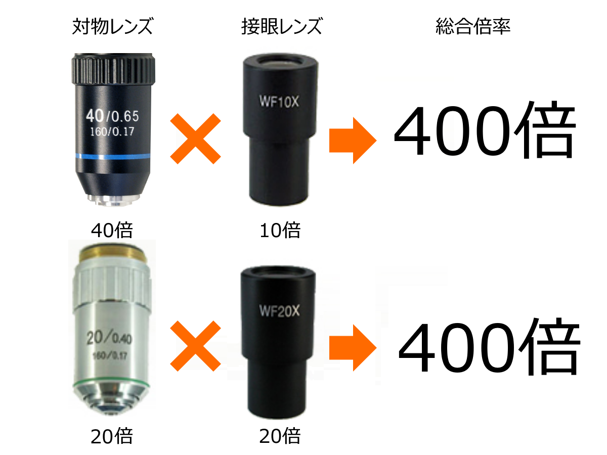 顕微鏡における「対物倍率」とは、対物レンズのみの倍率を指します。