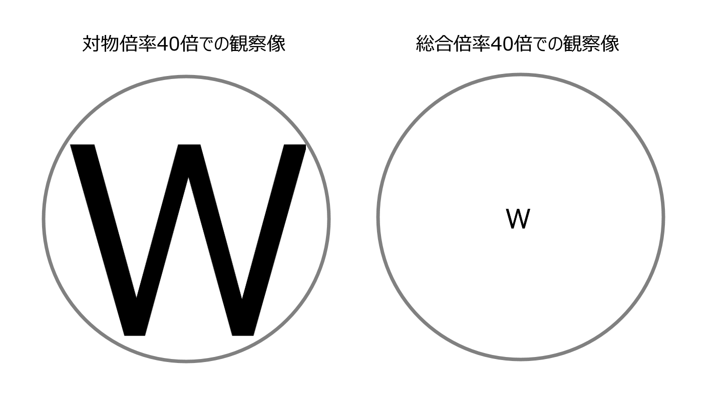 同じ「40倍」でも、対物倍率と総合倍率で観察像の大きさは全く異なる